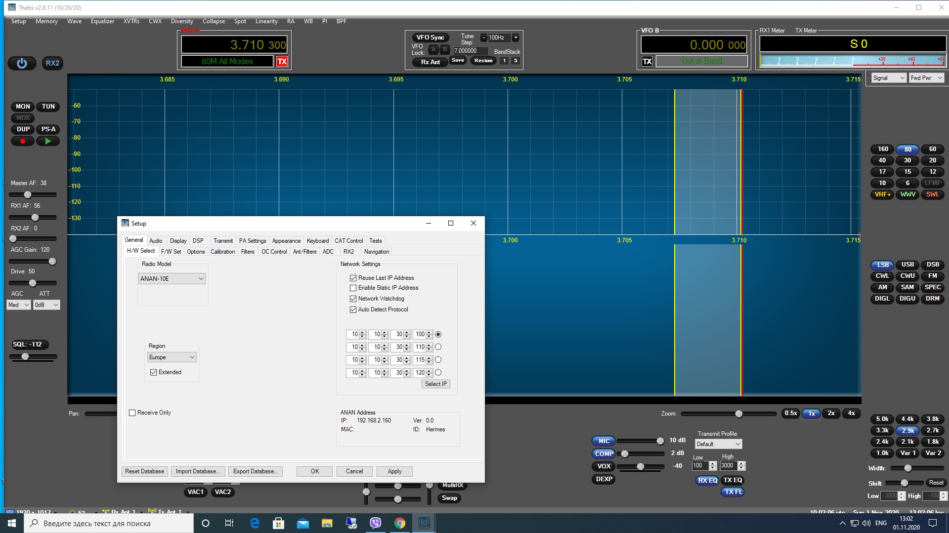 Прием с BPF в режимах 1-го и 2-х приемников. 20м с BPF, 30m - без. На 10.100 молотит телетайп Гамбург - метео :)