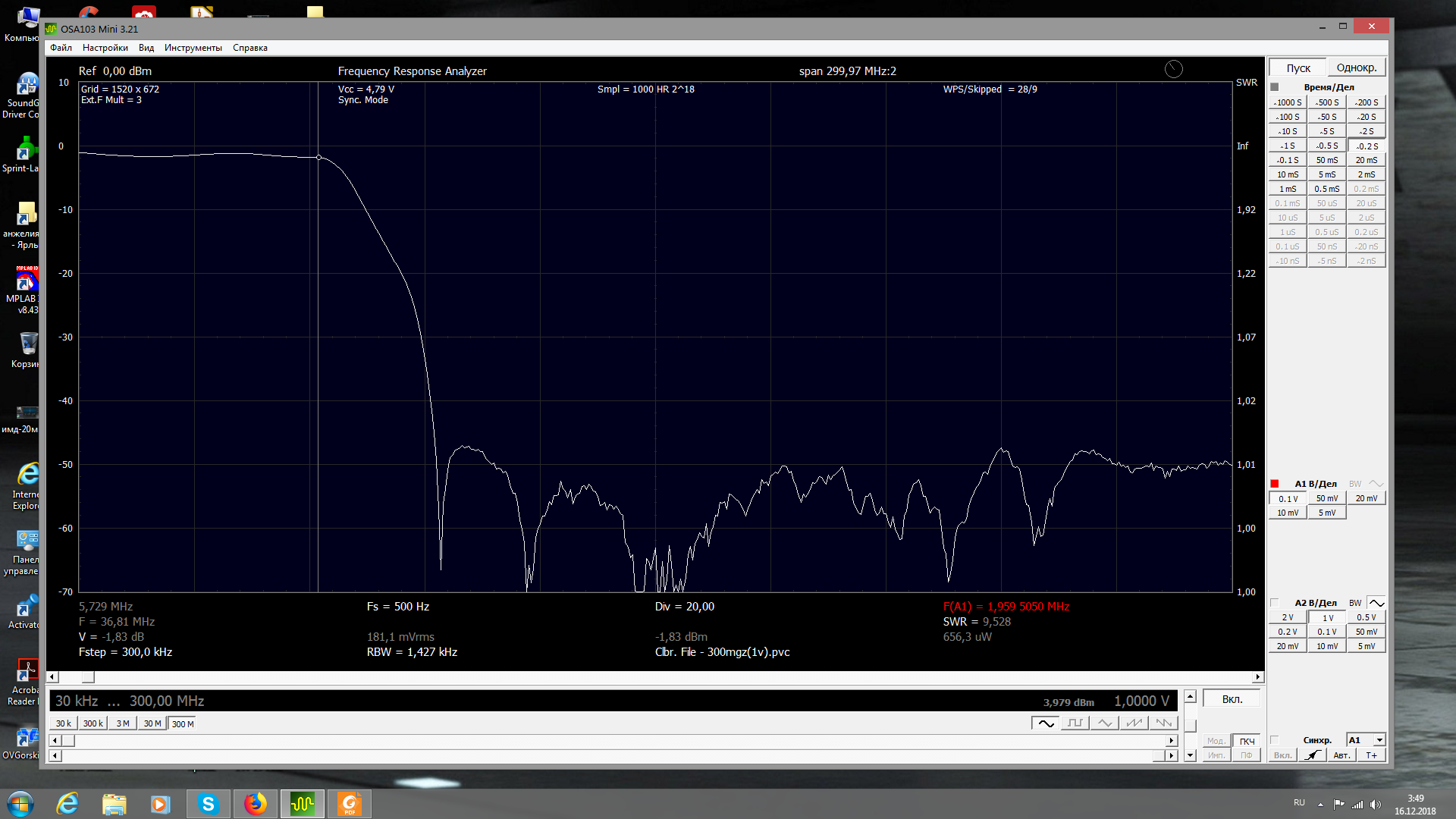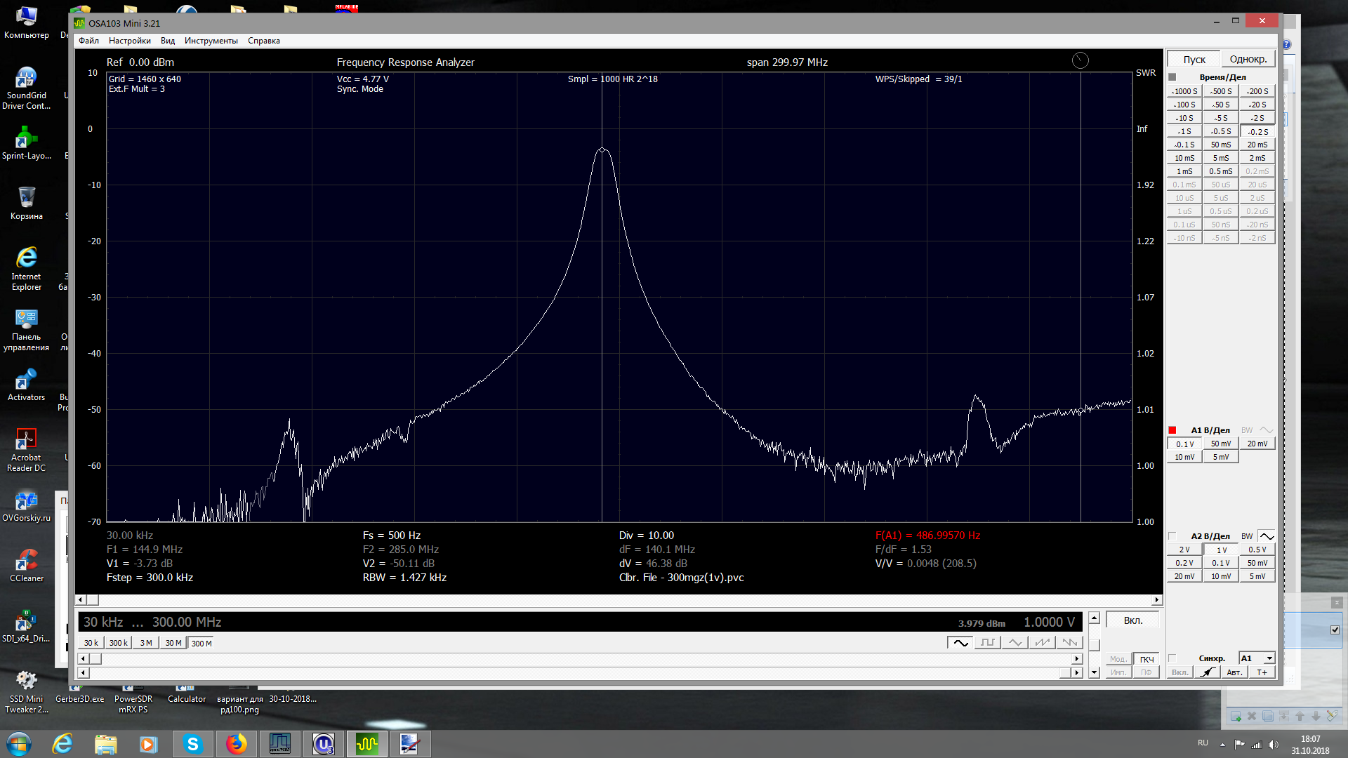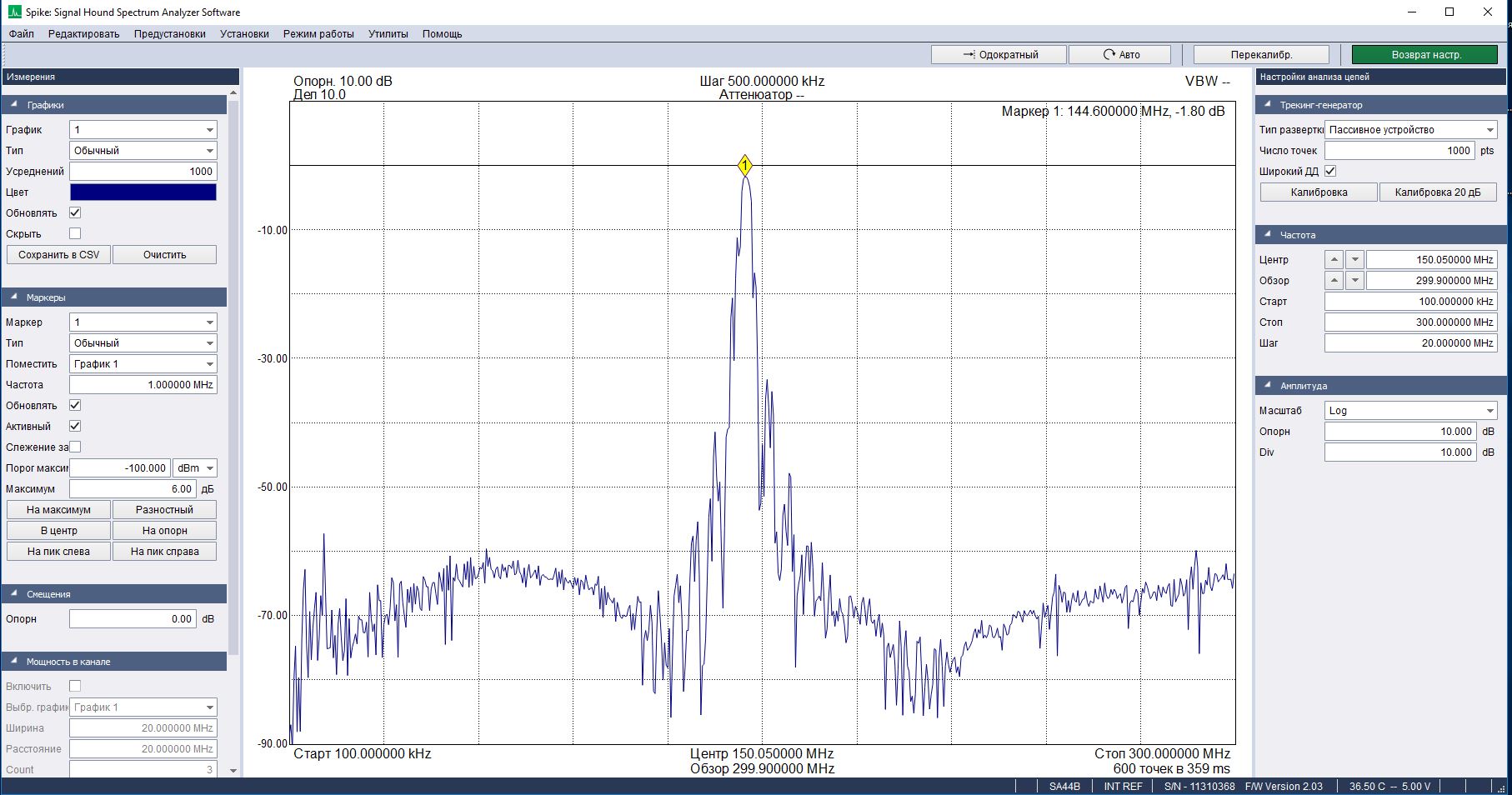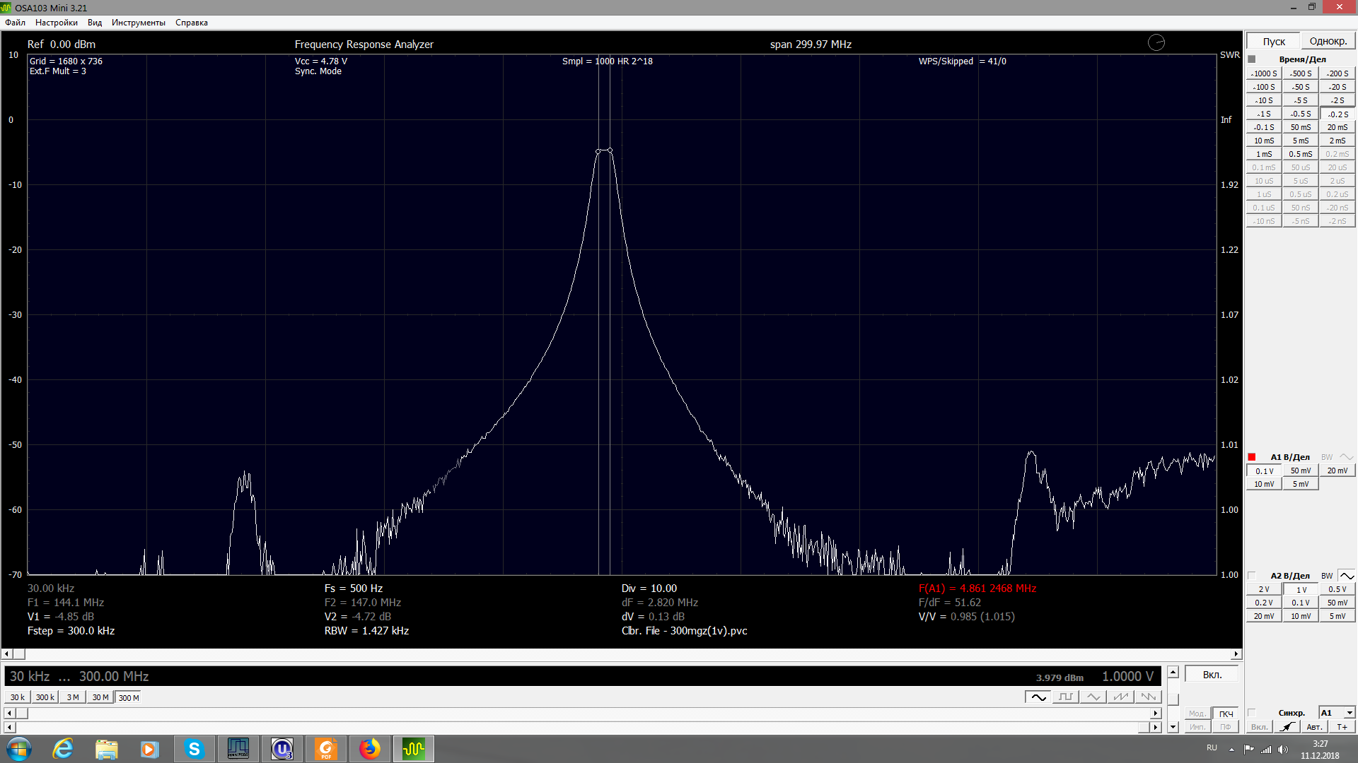 Предварительные измерения показали следующие параметры.