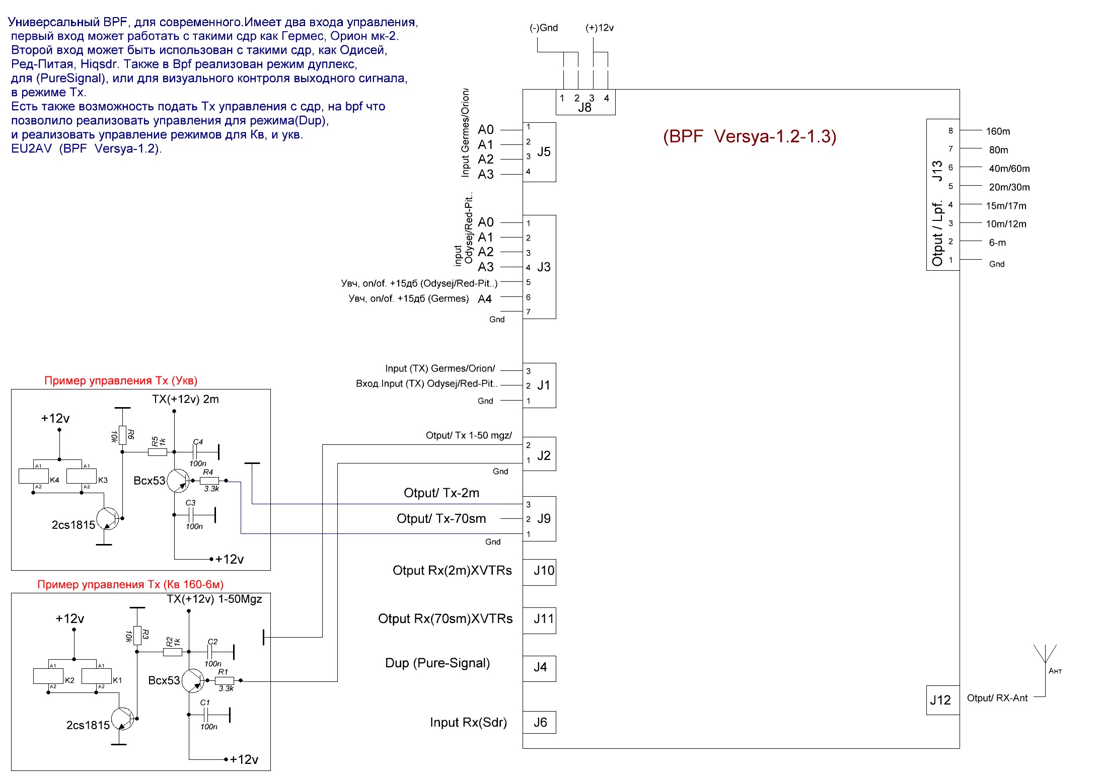 В новом варианте схемы сделал возможность выбора питания для всех реле что на плате 5в, и 12в. Плюс добавлен ключ питания для увч.