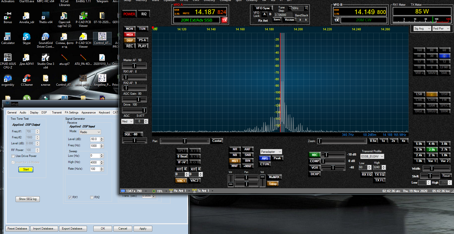 Что интересно когда поднимаю мощность от минимум до максимум, то шумовая дорожка не поднимается. Пробовал в гермес, и другие с древним цап, то шумовая дорожка заметно поднимается(это говорит о фазовом шуме тх), что в очередной раз оправдывает меру использовать современные 16бит DACD (TX).