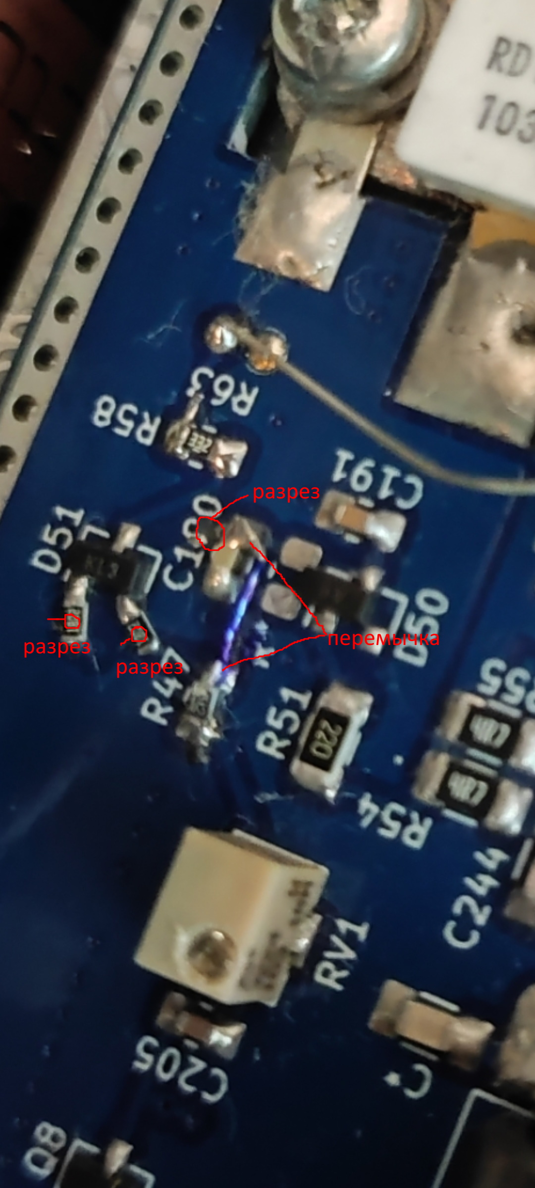 Hi Yury,in order to update to 3.6.1 i have replaced 1) allmost all the LPF capacitors 2) R36 1.2K 3) R56-59 22ohm 4) R60-61 33K 5) add 2x22k at D51 (see picture).