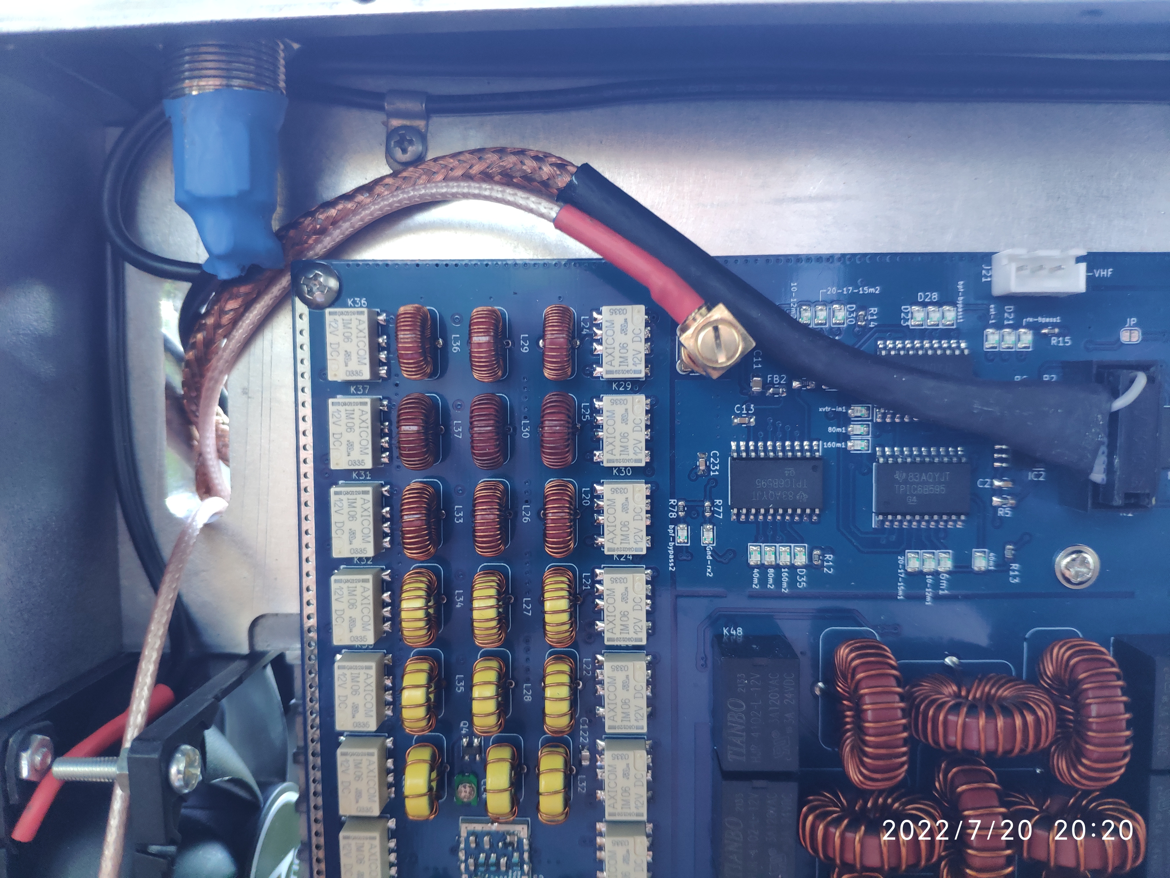 Here is another photo of the amplifier board, a current sensor and voltage measurements were added in the latest revisions. There is also a jumper on the board, when it is activated, the reverse mode turns on- that is, when we work on the VHF channel of the receiver RX2 is connected to the input RX1, so in VHF mode with the second receiver I can listen to 160-6m, which seemed very convenient to me. If the JP2 jumper is not soldered, everything will be by default (without reverse)