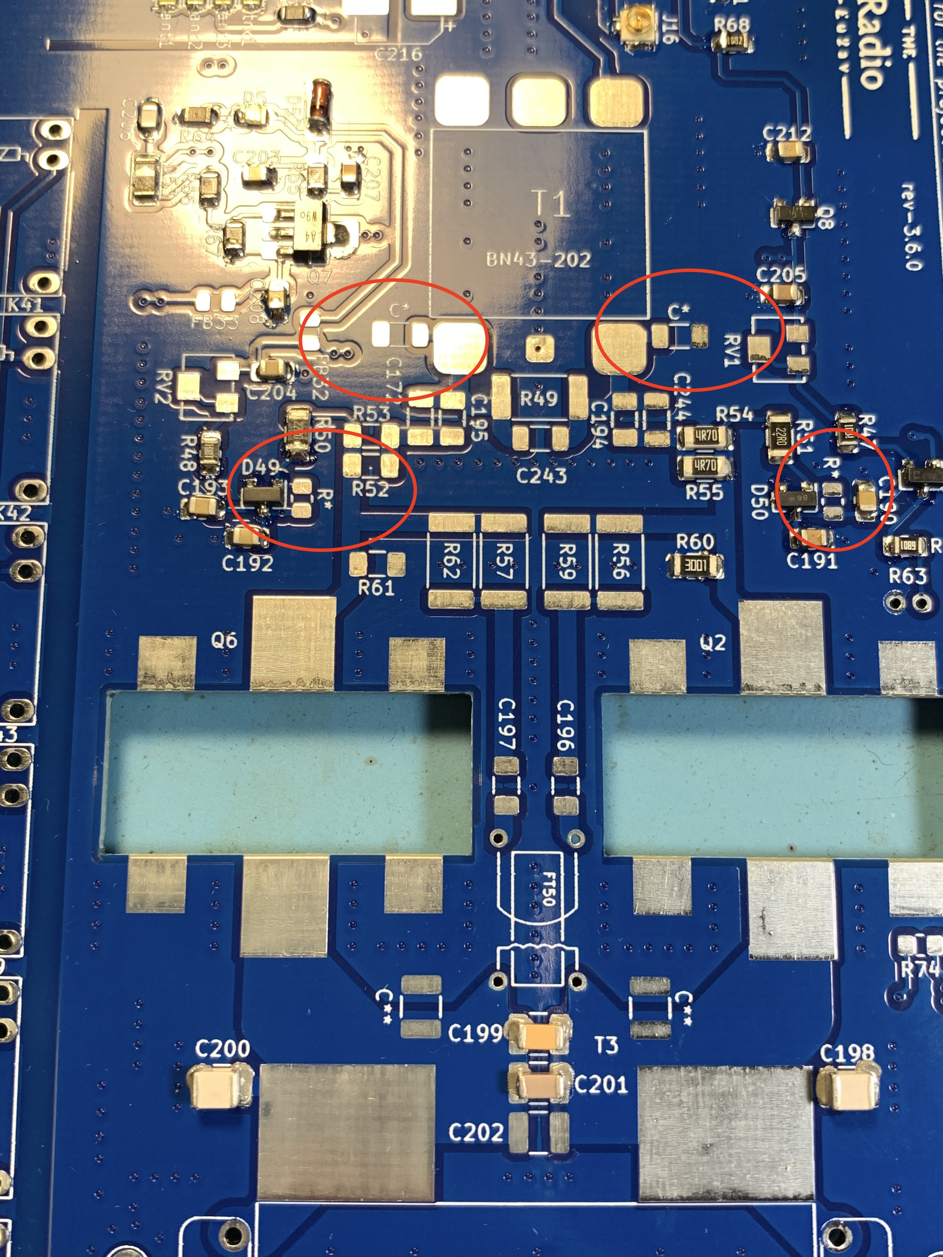 Hi Yury,in order to update to 3.6.1 i have replaced 1) allmost all the LPF capacitors 2) R36 1.2K 3) R56-59 22ohm 4) R60-61 33K 5) add 2x22k at D51 (see picture).